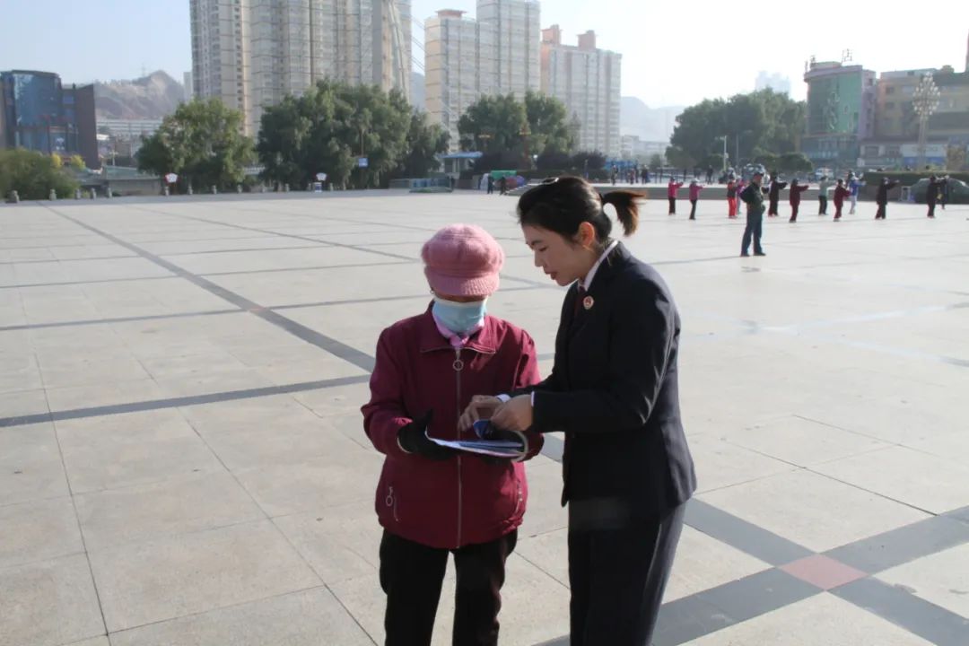 2023年10月20日,永靖县检察院组织检察干警到太极广场进行常态化扫黑除恶斗争宣传。